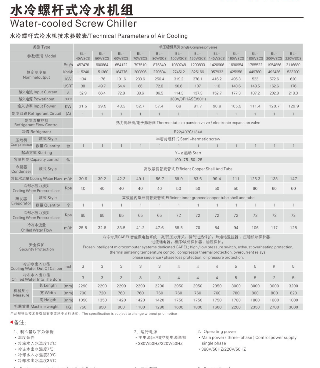 工業(yè)螺桿式水冷冷凍機特點: